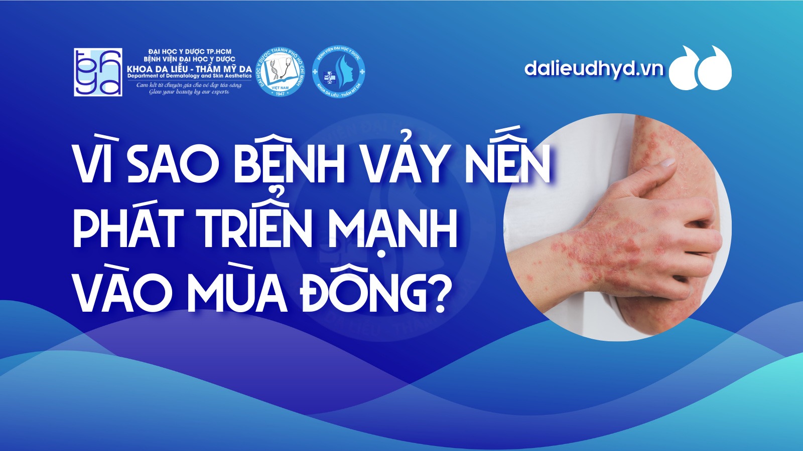 Vảy nến (Psoriasis) là bệnh lý không lây, diễn tiến từng đợt. Triệu chứng đặc trưng của bệnh là các mảng bong tróc, sần sùi phủ đầy vảy, có thể gây đau và ngứa dữ dội. Ba nguy cơ với người bệnh vảy nến vào mùa thu đông, gồm: