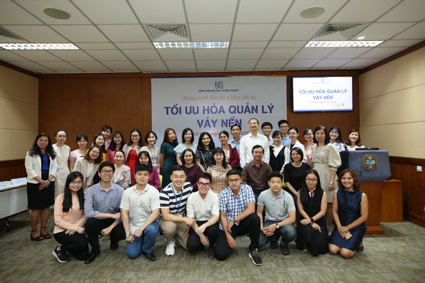 Ngày 17/01/2020, Khoa Da liễu – Thẩm mỹ Da, Bệnh viện Đại học Y Dược TP.HCM, phối hợp với Công ty Janssen Cilag đã tổ chức buổi đào tạo liên tục với chủ đề: “Tối ưu hoá quản lý vảy nến” với các giảng viên đến từ Khoa Da liễu -Thẩm mỹ Da, Bệnh viện Đại học Y Dược TP.HCM; bộ môn Da Liễu, trường Đại học Y Dược TP.HCM và Khoa Nội Cơ Xương Khớp (Bệnh viện Đại học Y Dược TP.HCM).