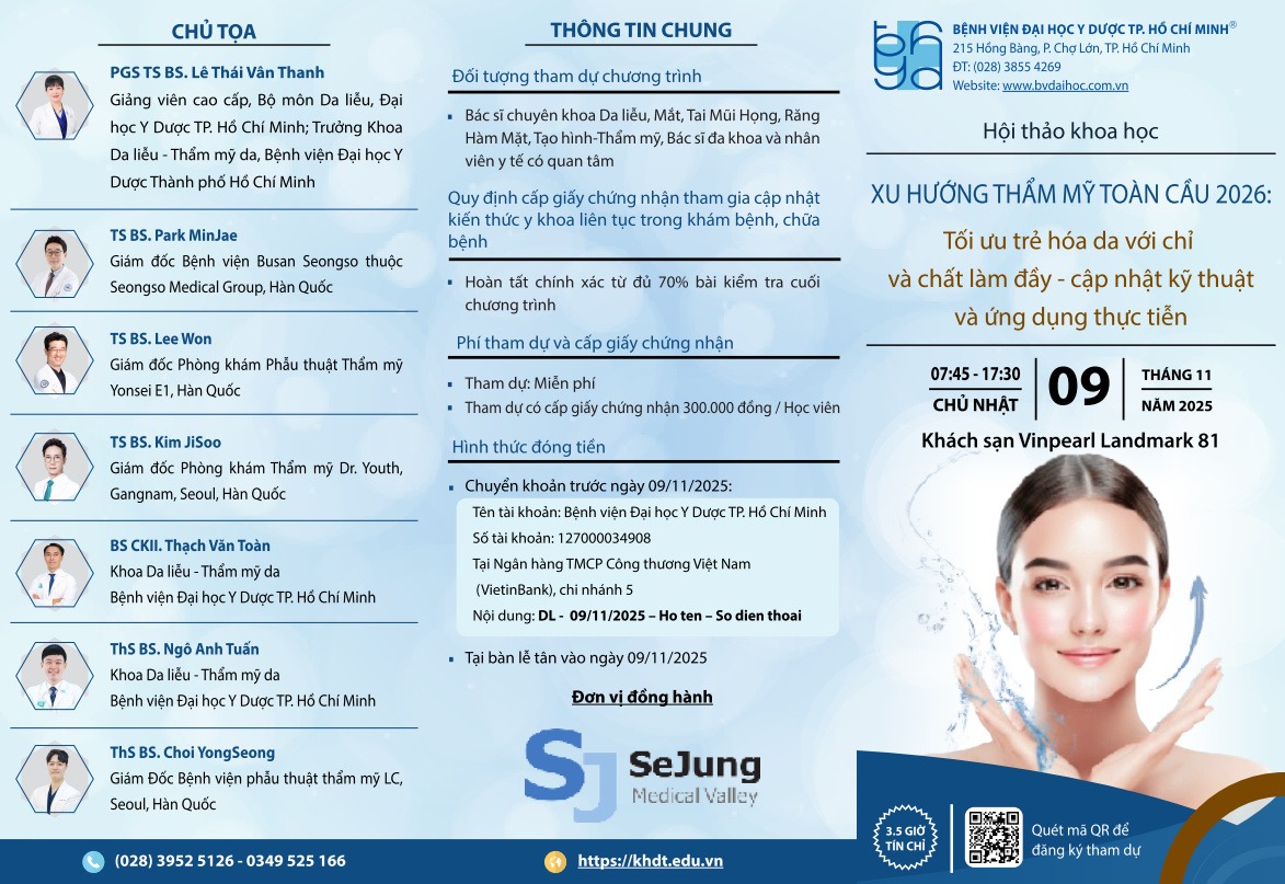 “🌿🌿Khoa Da Liễu – Thẩm Mỹ Da, Bệnh viện Đại học Y Dược TP. Hồ Chí Minh trân trọng kính mời Quý Bác sĩ tham dự Hội thảo khoa học
