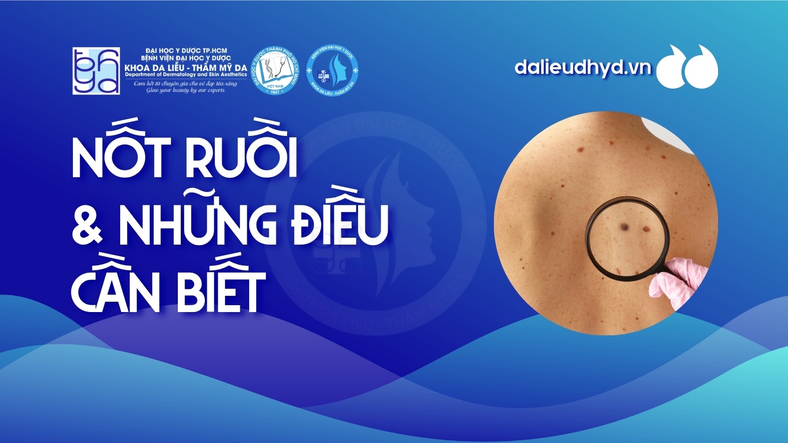 - + Nốt ruồi có các đặc điểm ABCD (Không đối xứng, bờ viền không đều, biến đổi màu sắc, đường kính >6mm)