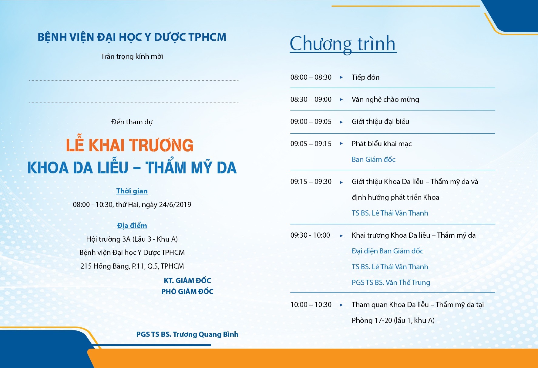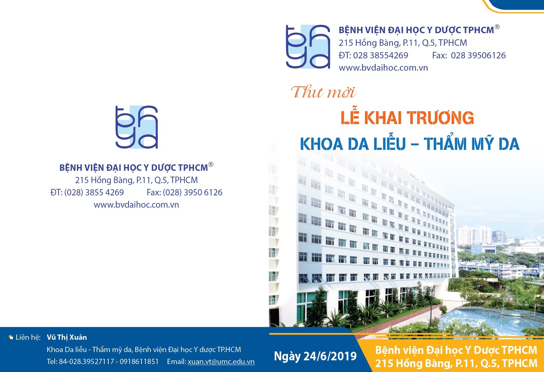 Địa điểm : Hội trường 3A ( lầu 3 – Khu A) Bệnh viện Đại học Y Dược TP.HCM và khoa Da liễu – Thẩm mỹ da ( phòng 17-20, lầu 1 khu A)